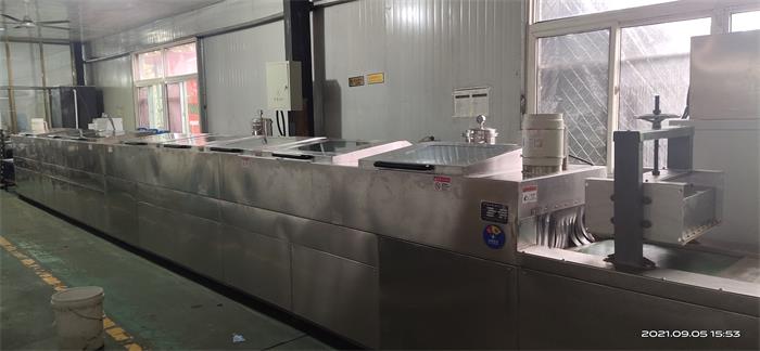 工藝流程:上料→退磁→高壓噴淋粗洗→超聲波清洗→高壓噴淋精洗→冷風(fēng)吹干→擺臂熱風(fēng)吹干→霧化涂油→擺臂風(fēng)干→下料